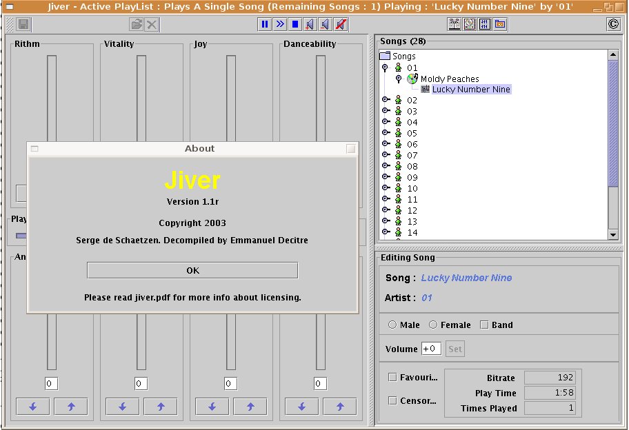 The version 1.1r is a reverse-engineered version of version 1.1. It has the same license as version 1.1 and can thus be used for further developments (An id3 V2 tag editor applet for example...)